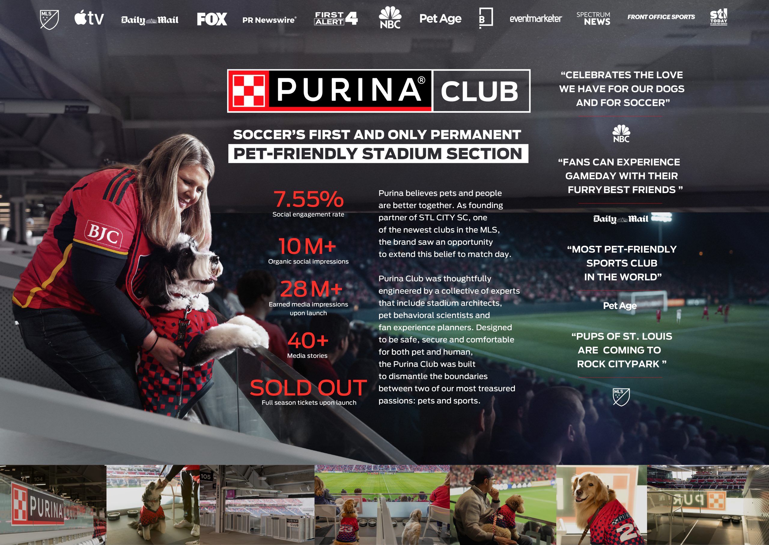 Purina Club became soccer’s first permanent pet-friendly section — a stadium experience designed so fans could finally cheer with their dogs, not away from them, proving that the game’s best moments are better shared together.